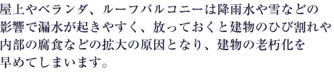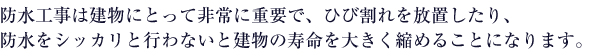 建物の雨や水のあたる部分に防水処理を行う事によって、