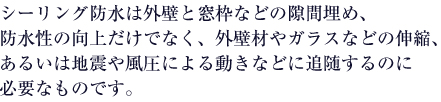 目地や建物の窓硝子やサッシの周囲にシーリング材(ゴム状のもの)を充填し、